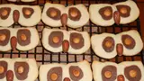 - Step 1:Cream butter and sugar until fluffy. Beat in egg and vanilla. Add baking powder and salt. Beat well. Add flour and mix until blended. Remove 2/3 of dough. Roll or pat dough out to form two 10 x 4 inch rectangles. Add cocoa to remaining 1/3 of dough. Mix until blended. Shape chocolate dough into two 10 inch long rolls. Place on rectangle and roll plain dough to cover chocolate dough completely, not including ends. Wrap in plastic wrap and chill at least 2 hours.
